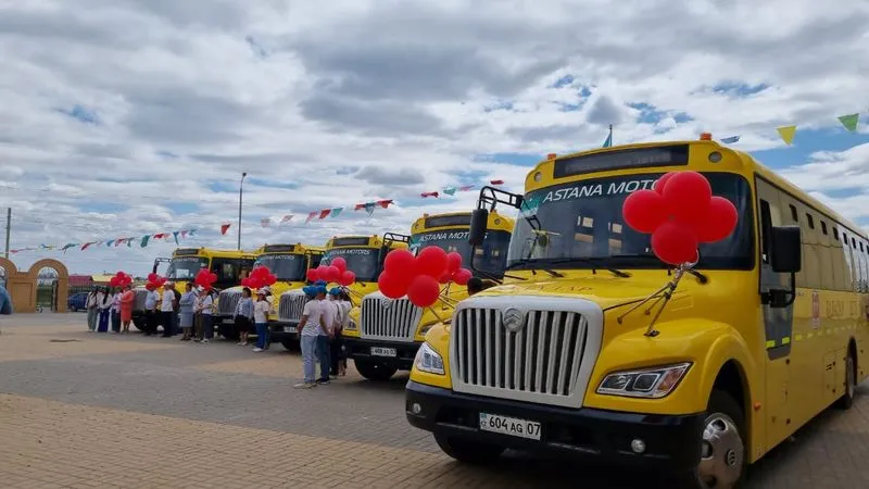Глава города Миржан Сатканов вручил школам ключи от новых автобусов.