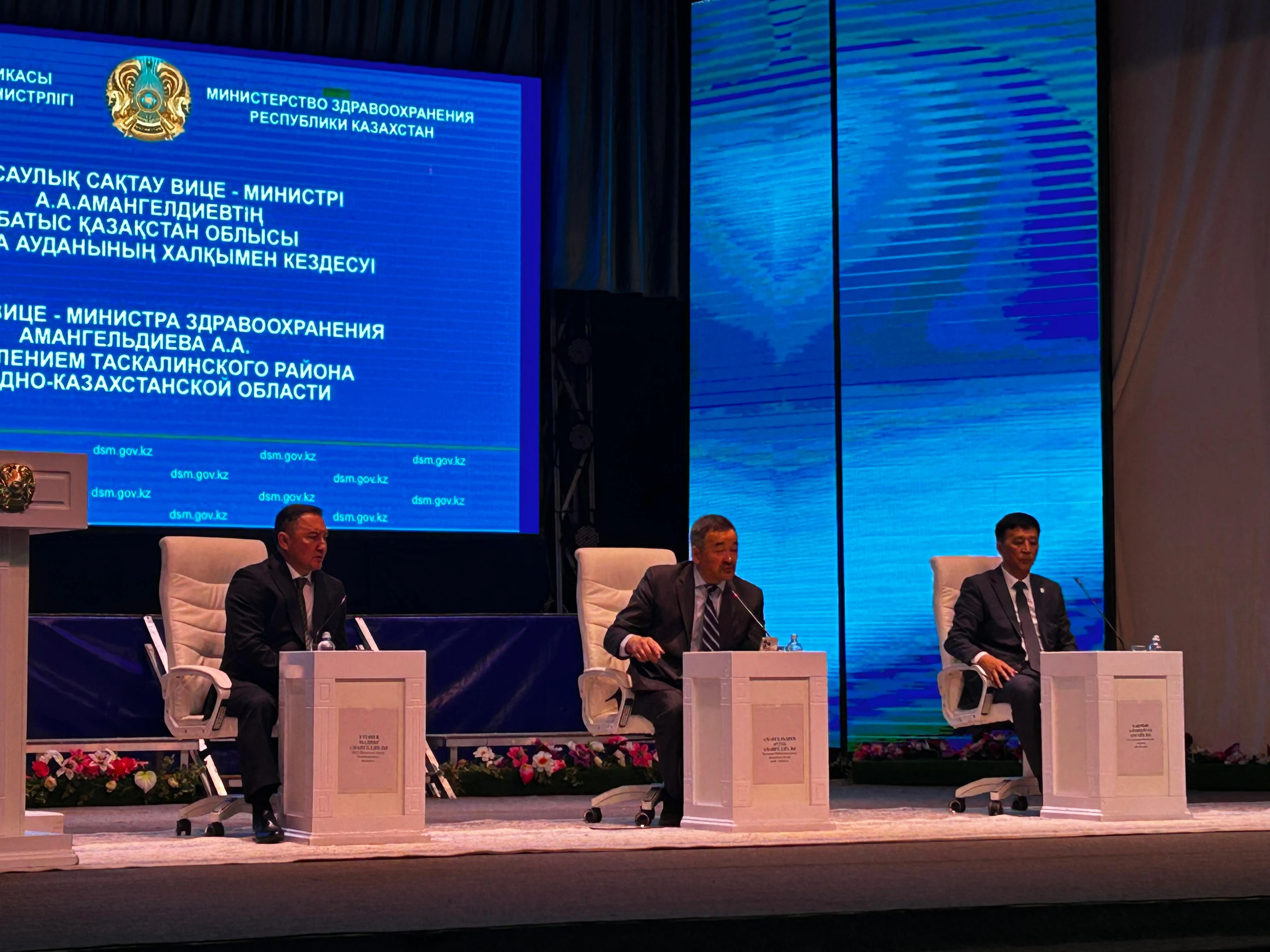 Денсаулық сақтау министрінің орынбасары Ардақ Амангелдиев Тасқала ауданының орталығында тұрғындарымен жүздесті. Ол министрліктің атқарып жатқан жұмыстарын жіпке тізіп, игі істерді баяндады. Вице-министр МӘМС жүйесі, кадрмен қамту мәселесіне тоқталды. Ол биыл өңірге 183 жаңа дәрігерлерді жұмысқа келгенін атап өтті. Мамандарды ауылда тұрақтандырып қалу үшін баспанамен қамту мәселесі өзекті.