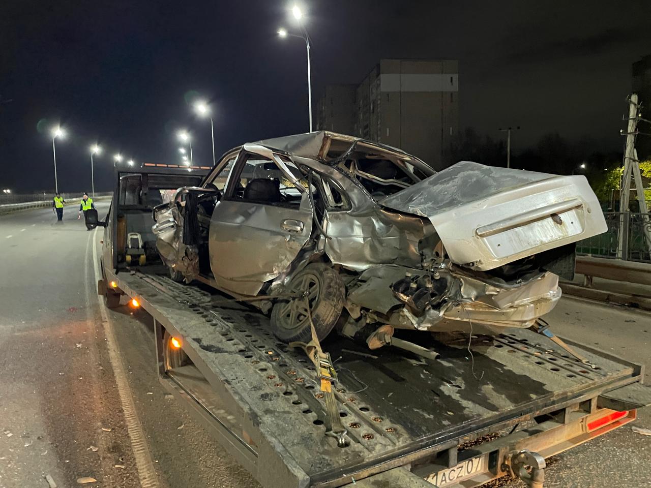 Авария произошла вечером 12 ноября на путепроводе в районе Омеги. По данным пресс-службы департамента полиции ЗКО, водитель Lada Priora выехал на полосу встречного движения, где столкнулся с Toyota Hilux. От удара иномарка столкнулась с пассажирским автобусом №13. С места ДТП в больницу госпитализировали водителя и пассажира автомашины Lada Priora. Обстоятельства и подробности аварии выясняют полицейские.
